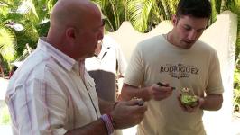 Andrew tastes dried and salted whale blubber while in the Faroe Islands.