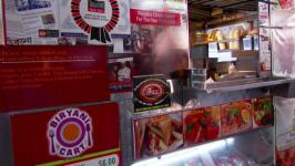 Sonia enjoys her morning coffee and checks out street art in Herald Square